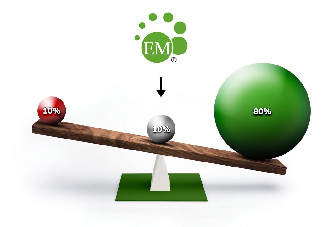 Ao contrário do que foi dito acima, a Tecnologia EM™ induz microrganismos neutros a funcionar como microrganismos benéficos. Esta ação é conhecida como efeito PROBIÓTICO porque com a aplicação dos produtos da Tecnologia EM™ no solo, no meio ambiente, e até mesmo no sistema digestivo dos animais através dos alimentos, é estabelecido um ambiente fermentativo, antioxidante e saudável, que impede a produção de gases mal cheirosos e substâncias nocivas que favorecem a síntese de substâncias benéficas que colaboram com a preservação e revitalização do meio ambiente. Este efeito probiótico pode ocorrer no solo, plantas e animais.